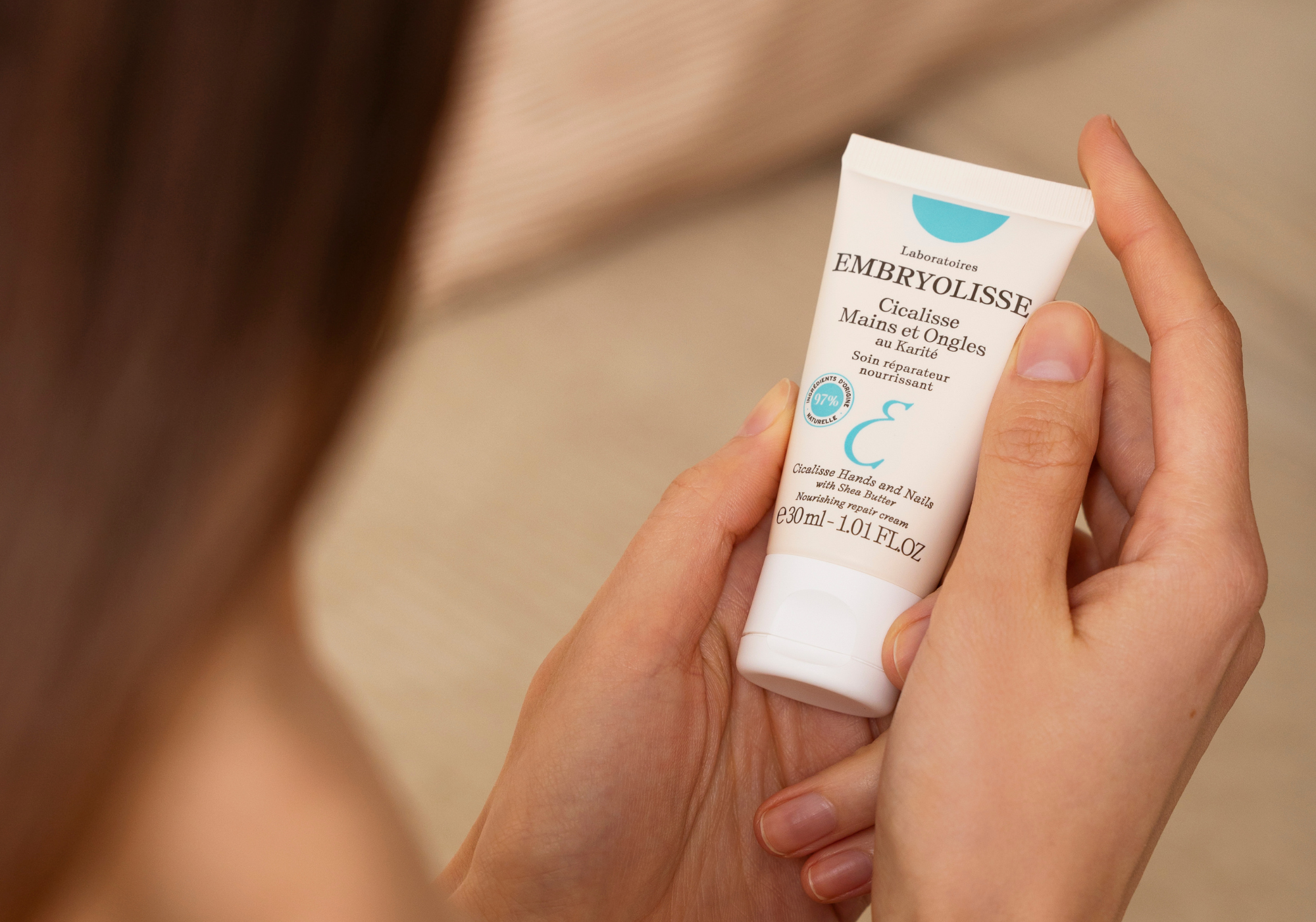 Avec seulement 10 actifs, elle répare les mains soumises en permanence aux agressions du vent, du froid, de la pollution, des produits détergents et des lavages à répétition. Au cœur de sa formule composée à 97 % d’ingrédients d’origine naturelle : le Beurre de Karité. Très riche en molécules actives telles que les karitènes, la vitamine A, les phytostérols et les triterpènes, cet actif surdoué est reconnu pour ses bienfaits nourrissants, réparateurs et protecteurs sur l’épiderme.