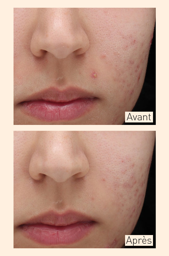 Résultats : Les boutons, éruptions et rougeurs sont réduits. L'excès de sébum et les brillances sont régulés. Le grain de peau est lissé, le teint est purifié.